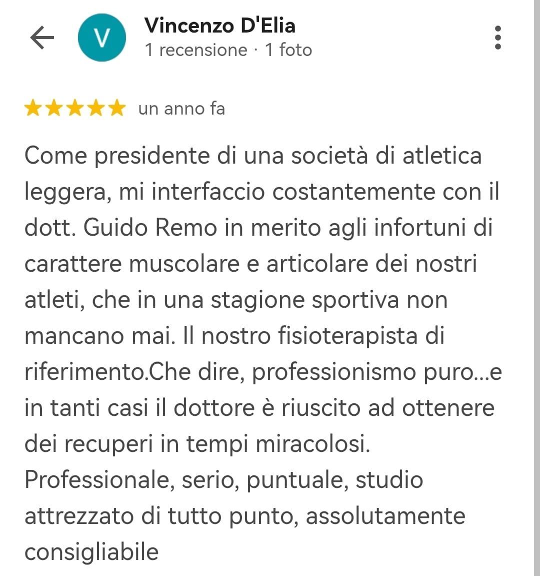 Il Dott. Guido Remo, laureato in Fisioterapia nel 2005 all'Università degli Studi di Bari e con un Master in Riabilitazione dei Disordini Muscoloscheletrici conseguito all'Università di Genova nel 2013, gestisce il suo studio di fisioterapia a San Pietro in Lama (LE), in Via Pietro Nenni 50.